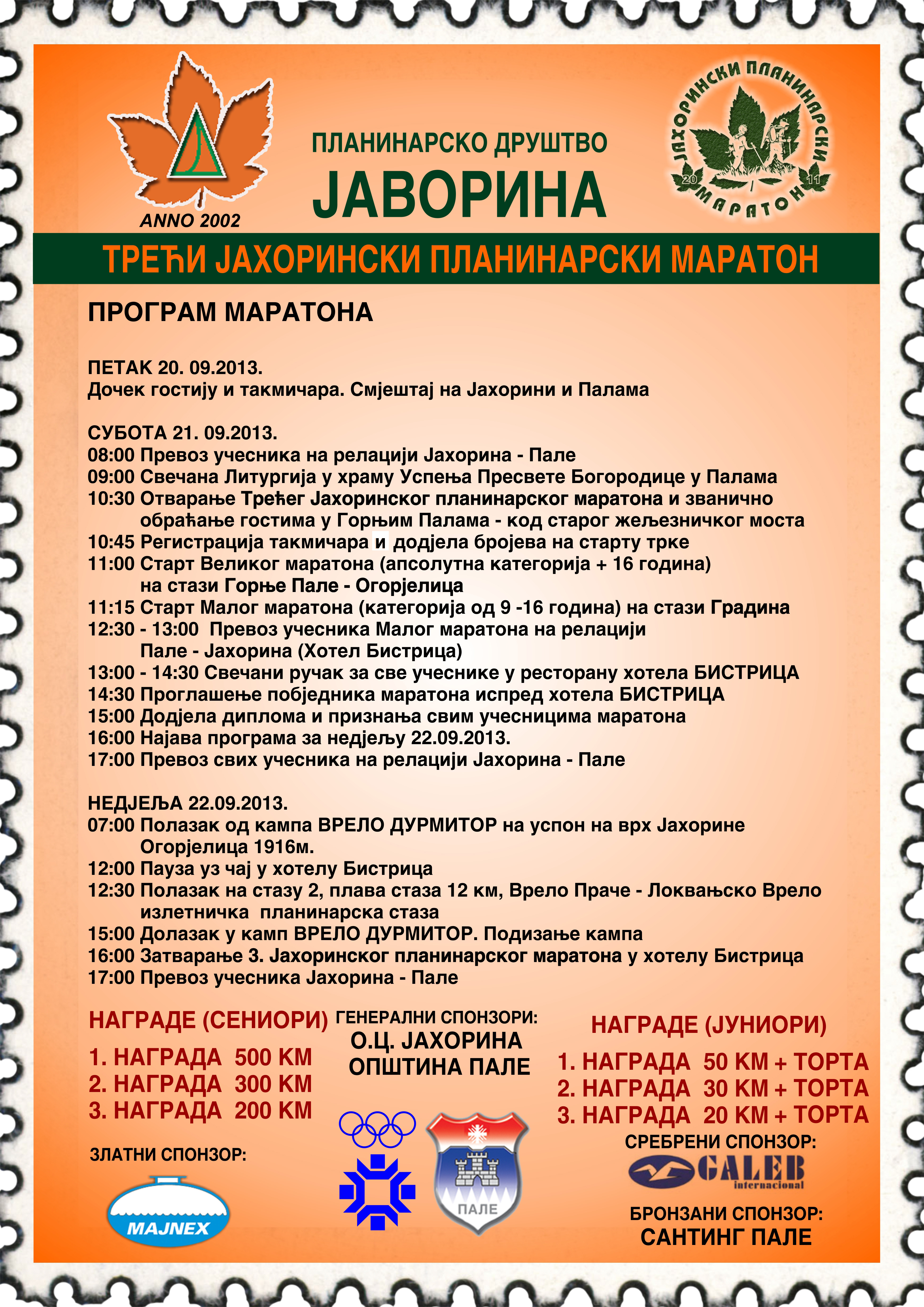 PROGRAM III JAHORINSKOG PLANINARSKOG MARATONA