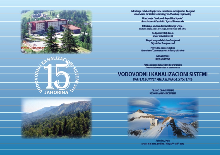 27 Maja, 2015XV međunarodna jubilarna konferencija „Vodovodni i kanalizacioni sistemi“, Jahorina održaće se od 27-29. maj 2015. u hotelu “Bistrica” na Jahorini, a u organizaciji Udruženja vodovoda Republike Srpske, Udruženja vodovoda i kanalizacije Srbije i operativnog organizatora Udruženja za tehnologiju vode i sanitarno inženjerstvo.