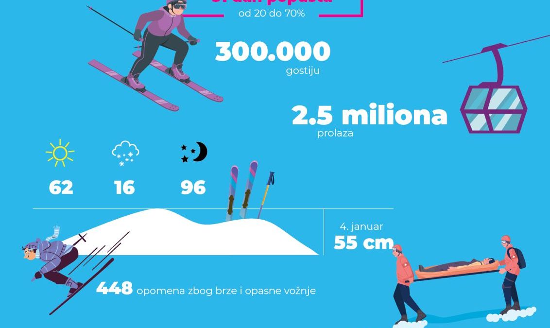 Zahvaljujući modernim sistemima za osnježavanje, proizvedeno je 320.000 m³ vještačkog snijega, uz 816 radnih sati. Tabači su obavili čak 4.504 sata rada, a značajan uspjeh zabilježila je i škola skijanja, sa 835 polaznika u periodu od 1. decembra do 10. marta.