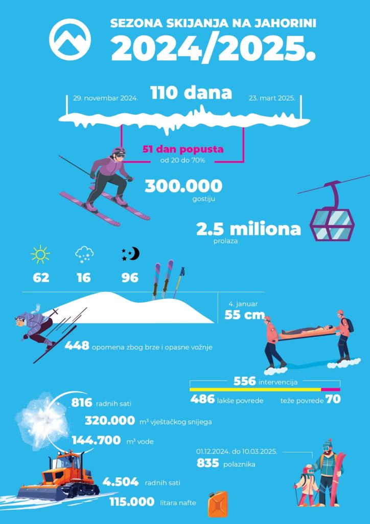Nakon 110 dana nezaboravne zimske sezone, Olimpijski centar Jahorina se zahvaljuje svim posjetiocima koji su ove zime uživali na stazama Jahorine – svima koji su je izabrali za svoje uspomene, pobjede, druženje i trenutke koji će se dugo pamtiti.