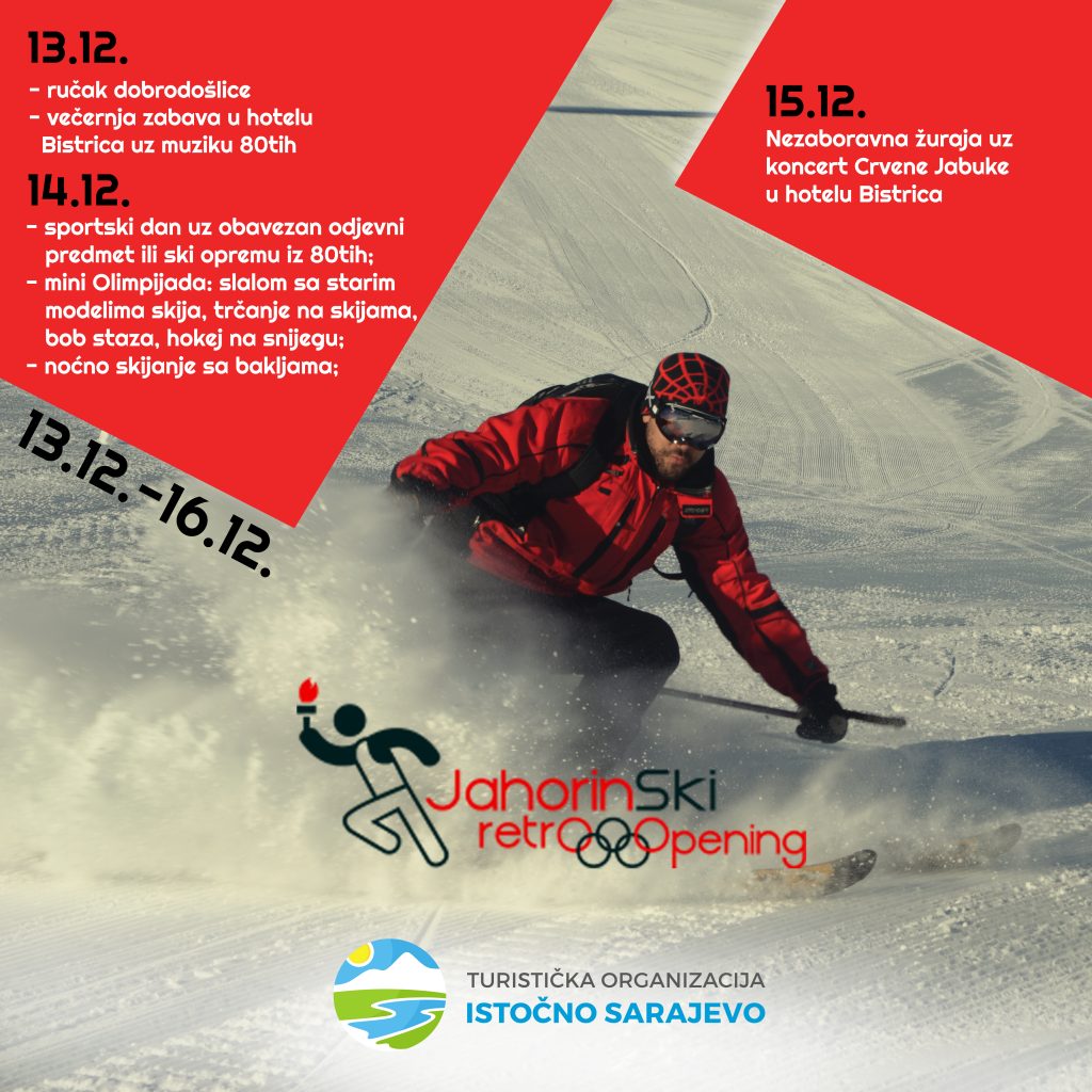 November 2, 2018The official opening of the winter season is planned from 13th to 16th December 2018. During the three-day Retro ski opening, all mountain visitors will enjoy retro entertainment and competitive activities. The three-day retro event contains various events and the most interesting is the mini Olympics – slalom with old ski models, bob and ice hockey competitions, and night skiing with torches. The Olympic Mountain will allow visitors, during the Retro ski opening, to enjoy unlimited entertainment during a sports day with the obligatory outfit or ski equipment from the 80’s. Visitors will have the chance to attend the concert of Crvena Jabuka on 15th December whose tickets are in great demand.