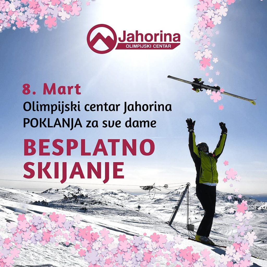 Povodom međunarodnog dana žena, 8. marta sada već tradicionalno poklanjamo svim damama besplatno dnevno ali i noćno skijanje. Od 11. do 14. marta u okviru posljednjeg promo perioda sa nazivom Winter is here to stay, važiće popust na od 20% na sve ski karte koje se iskoriste u okviru navedenog termina. Apelujemo na sve skijaše i posjetioce planine Jahorine da se strogo pridržavaju svih epidemioloških mjera u cilju zaštite zdravlja i što bezbrižnijeg boravka na Jahorini.
